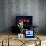 La struttura offre un balcone e un salottino arredato con un divano, oltre a comfort moderni come una TV satellitare. I servizi di sicurezza in camera includono rilevatori di fumo. L'appartamento vanta 1 camera da letto con cuscini in piuma. L'alloggio è dotato di 1 bagno con una doccia accessibile ai disabili e un bagno alla francese. Ci sono anche asciugacapelli e asciugamani.